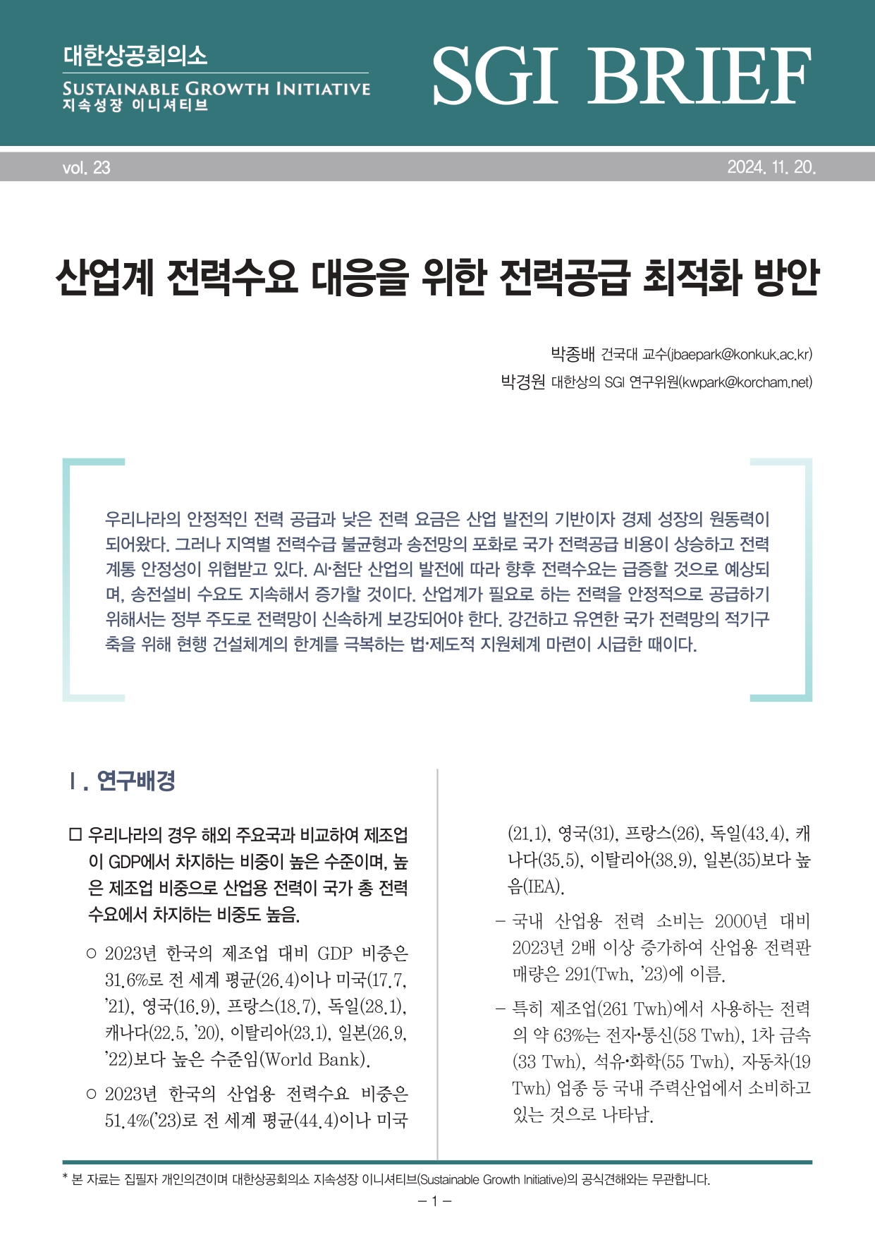 | ‒ | [SGI 브리프] 산업계 전력수요 대응을 위한 전력공급 최적화 방안 |