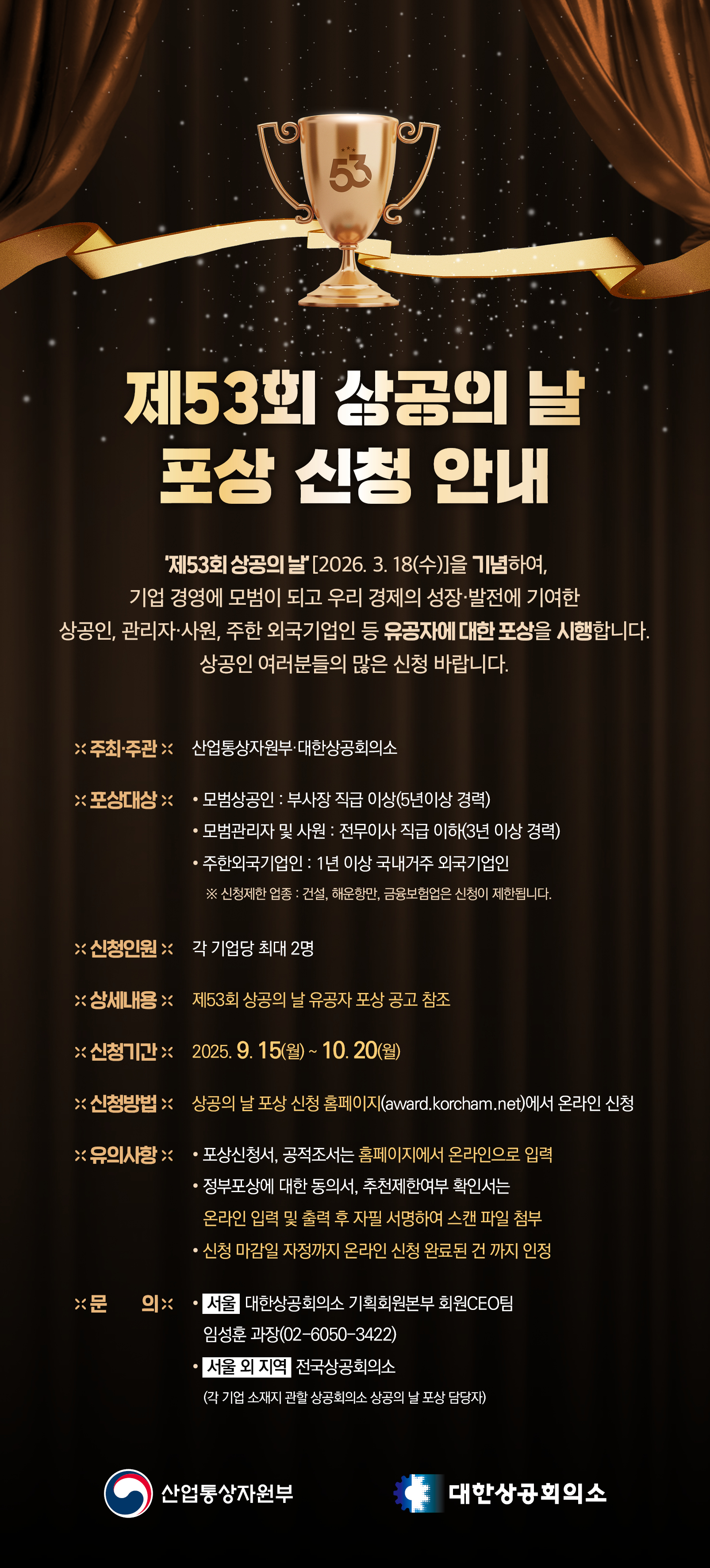 ‒ | 2026년 제53회 상공의 날 포상 신청 안내 |